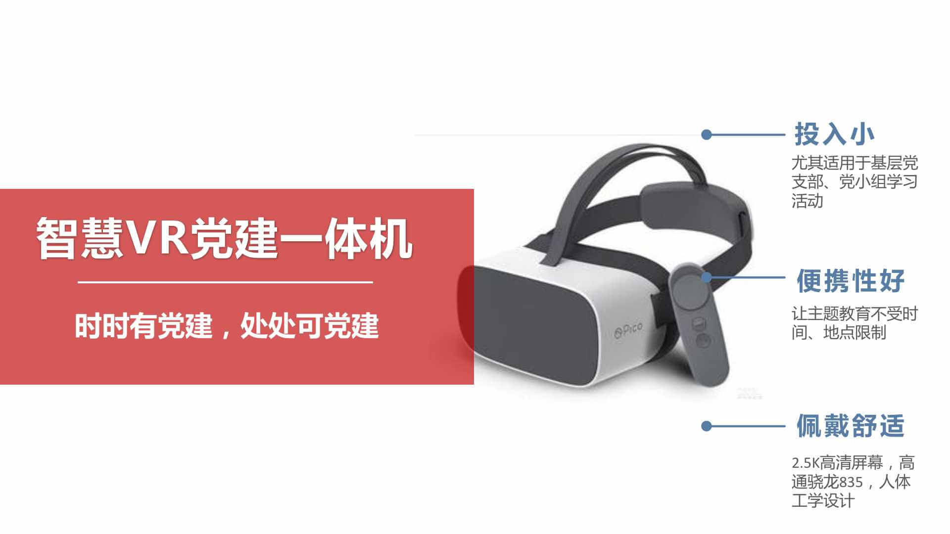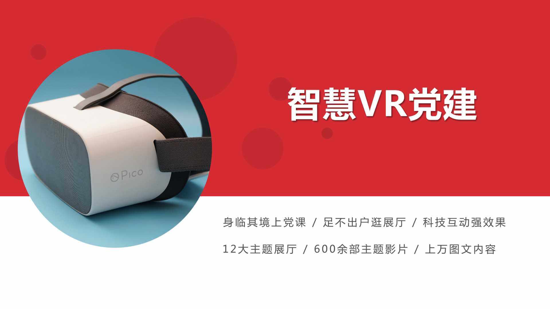 VR(虚拟现实技术)设备的出现,为党建学习教育提供了一个全新的视野和途径 ——学习者通过佩戴VR设备或观看大屏,能真实体验置身于历史事件中的写实感,加深学习记忆,提升宣教成果。