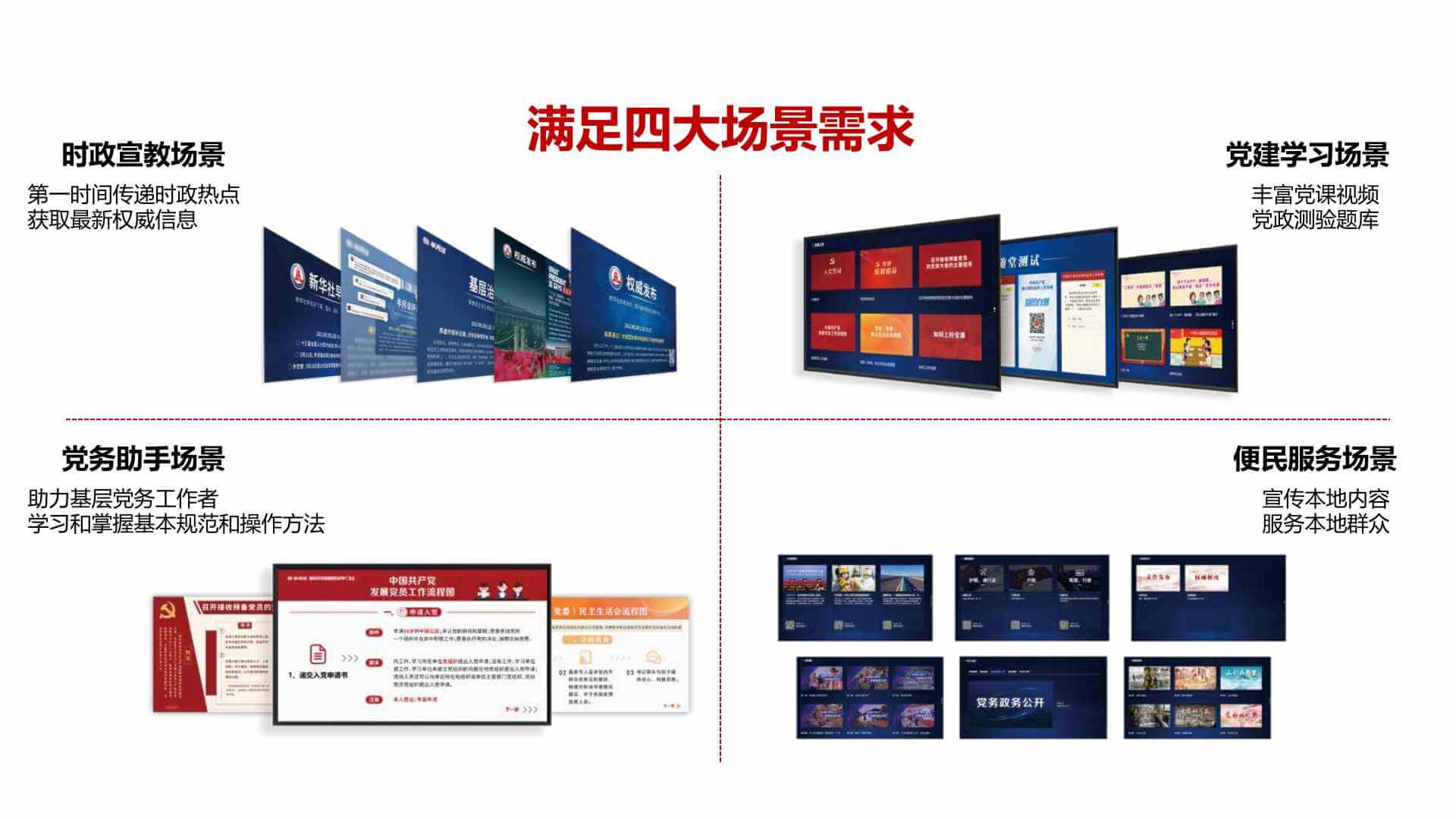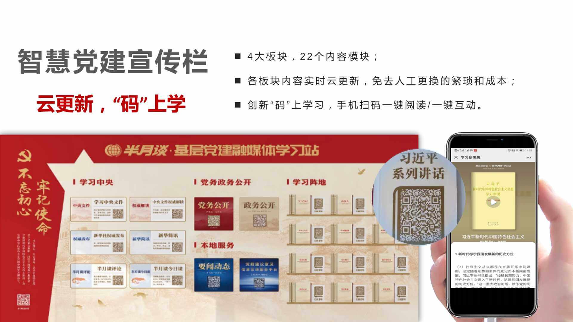 在当前智能化技术大发展的背景下,党建宣传服务工作亟待与信息技术深度结合。全媒科技依托新华社权威党建内容支持,立足于基层党建工作需求,推出一系列兼具实用性和科技感的党建产品,充分利用媒体深度融合的契机与优势,力争在第一时间把党的声音传播到基层。